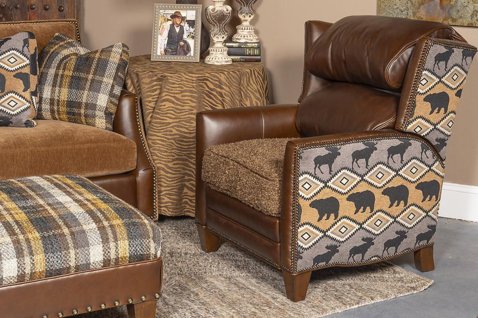 **767-LFR** Santorini Recliner in Defy Caribou, Lambkin Walnut and Gatlinburg Timber.