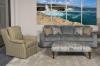 **9100-F** Chelsea Sofa in Limerick Vapor with Jardin Nile and Kelso Moss pillows.