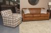 **C24-00-L** Denver Leather Sofa in Priceless Terrain with Spotted Mineral pillows. C24-01-SF Denver Swivel Chair in Como Onyx.