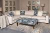 9062-F Danielle LAF Corner Sofa in Parker Frost with Paros Cascade, Tiger Cascade and Yak Snow pillows.
