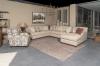 **2362-F** Santiago LAF Corner Sofa in Mystique Flax with Narumi Amber, Heston Amber and Pitt Adobe pillows.