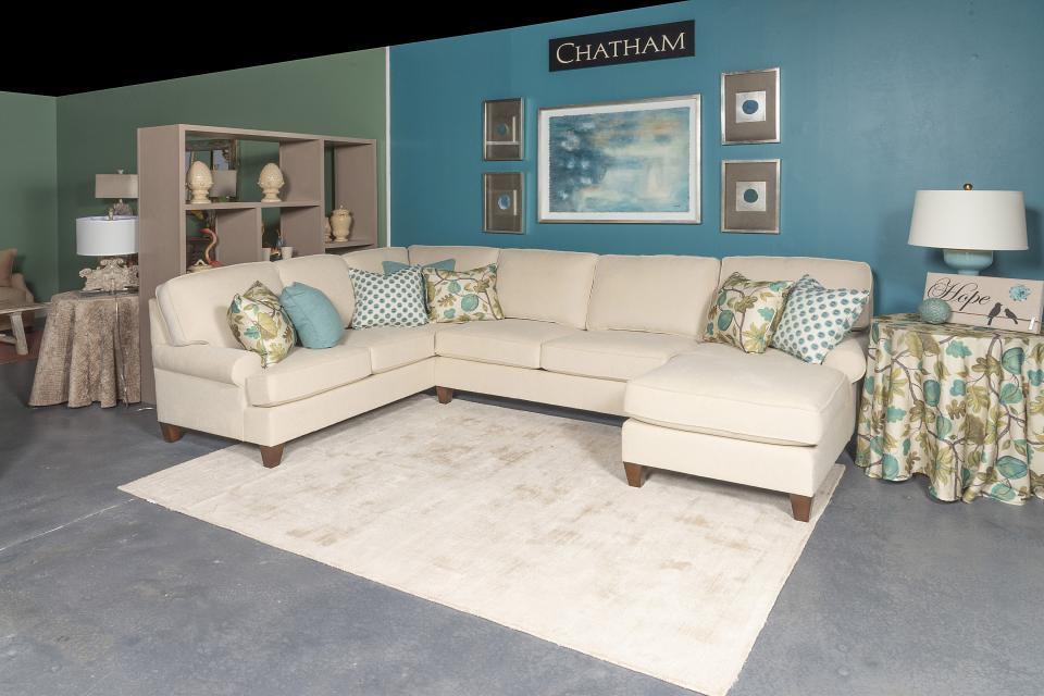 **5962-SLM-F** Chatham LAF Corner Sofa in Queen Canvas with Ingram Verdi, Jonah Verdi and Schooner Verdi pillows.