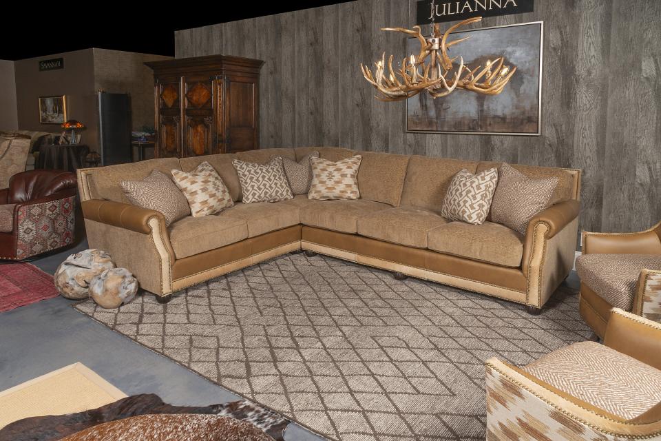 **3062-LF** Julianna LAF Corner Sofa in Revival Driftwood, Priceless Saddle and Natural Beige with Salida Driftwood, Reno Saddle and Bosky Driftwood pillows. 3053-LF Julianna RAF Sofa in Revival Driftwood, Priceless Saddle and Natural Beige with Salida Driftwood, Reno Saddle and Bosky Driftwood pillows.