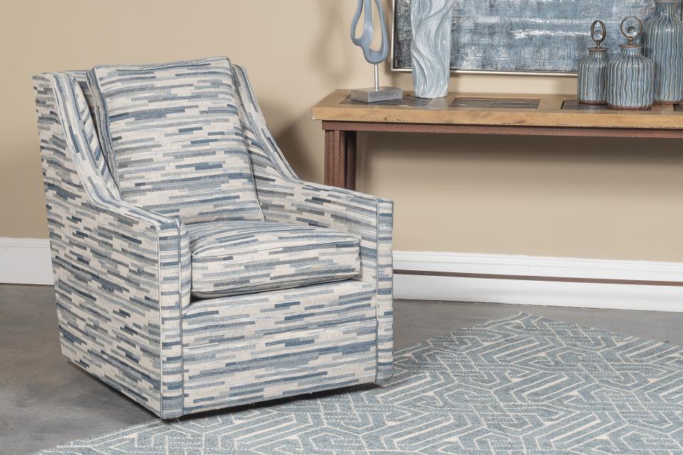 **241-SF** Brandon Swivel chair in Wanderlust Denim.